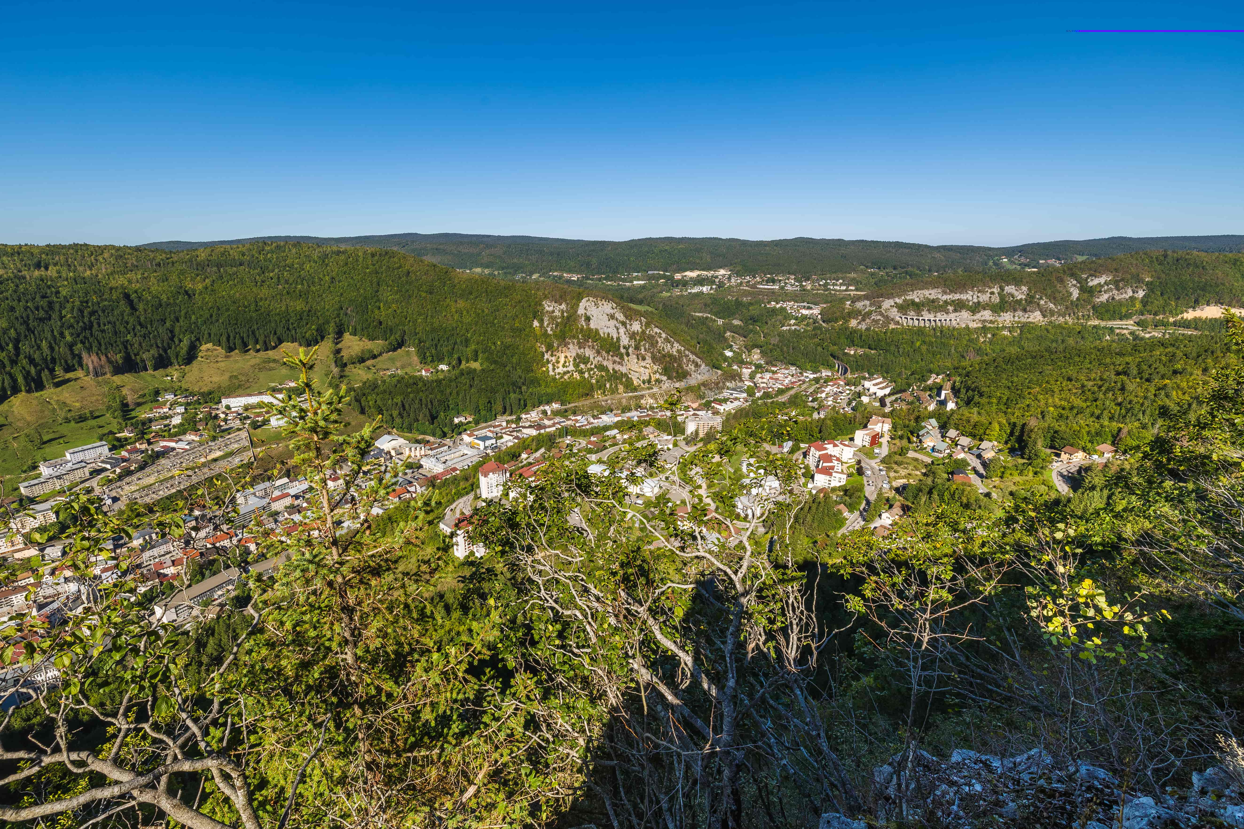 Située sur le versant opposé du belvédère de la Roche au Dade, la Roche Brûlée offre un autre angle pour contempler la ville de Morez, depuis la forêt du Risoux. Cette dernière s'étend jusqu'au Mont d'Or. Vous pouvez observer avec aisance la forêt et les falaises abruptes qui entourent la ville de Morez, parfaitement enclavée dans la vallée de la Bienne, en suivant les sillons de la rivière.